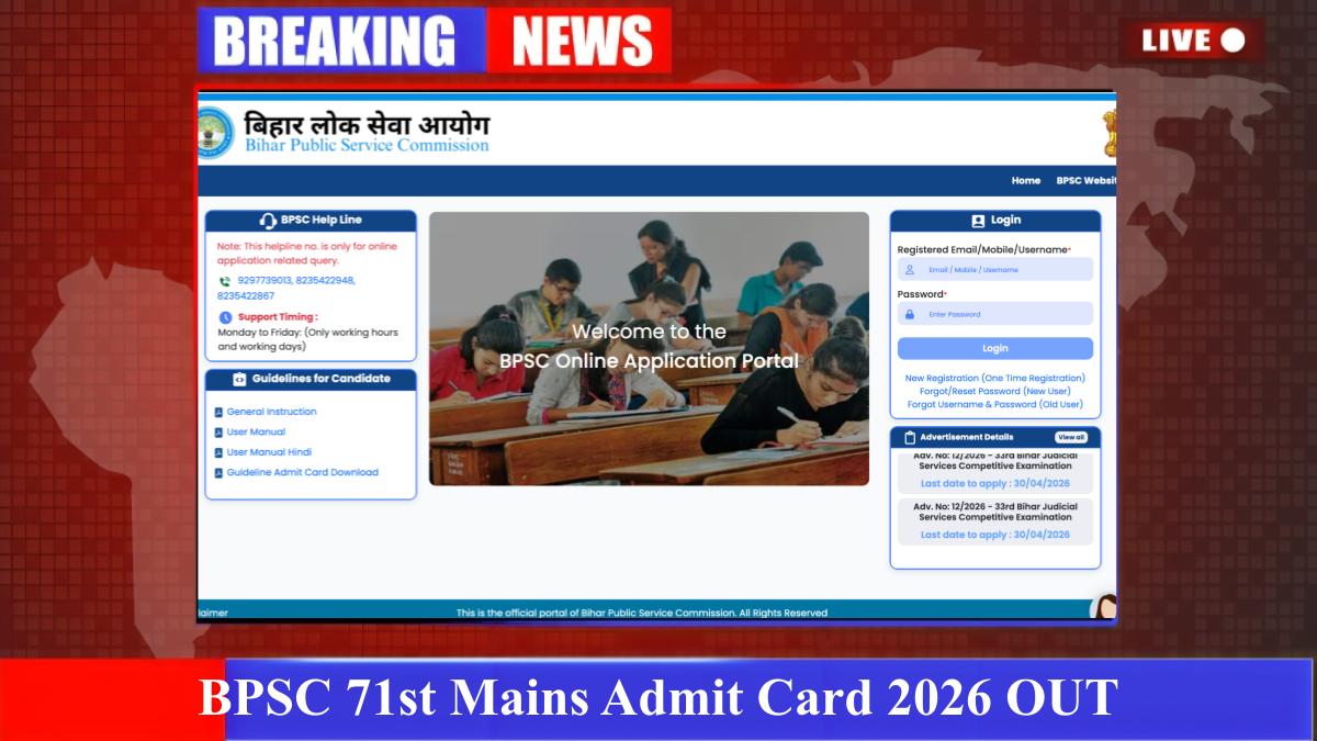 BPSC 71st Mains Admit Card 2026 OUT – Download Now