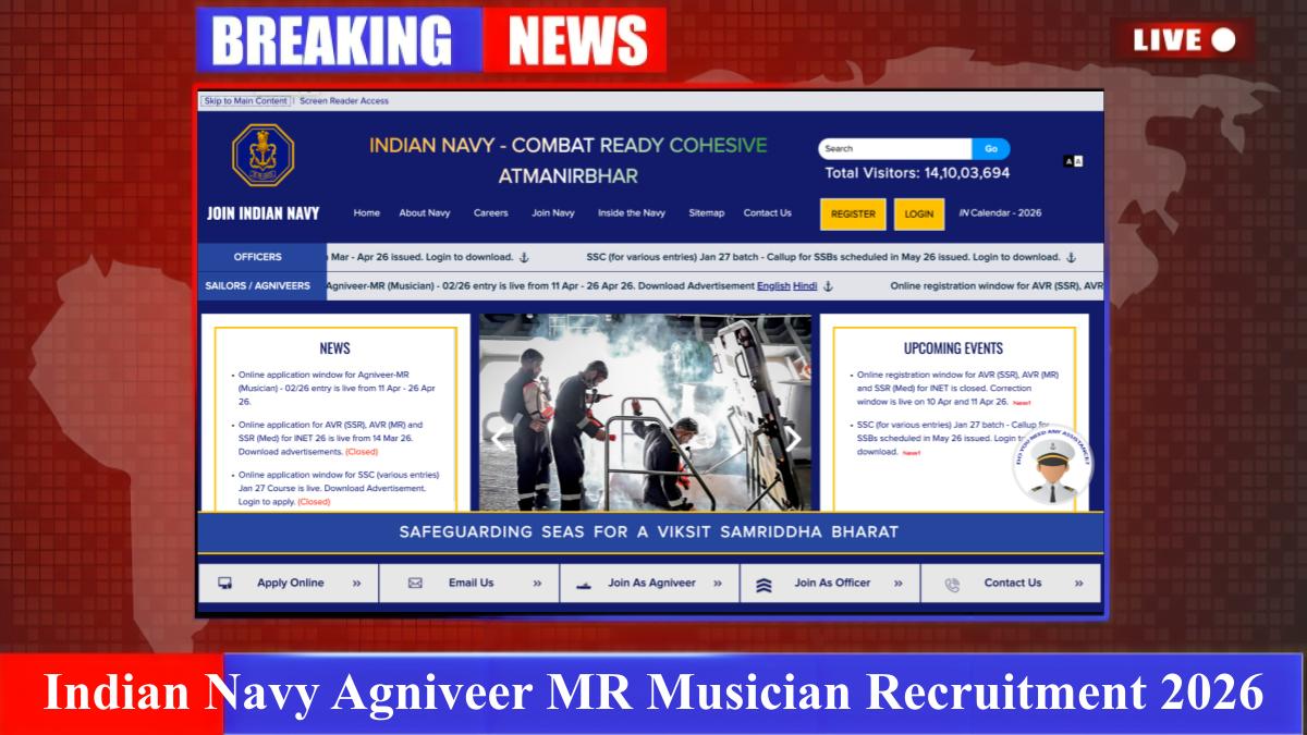The Join Indian Navy (Nausena Bharti) has officially invited online applications for the Agniveer MR (Musician) 02/2026 Batch. This is a prestigious opportunity for musically talented candidates to serve the nation. Eligible candidates can submit their forms starting from April 11, 2026. Please ensure you review the eligibility criteria and musical requirements before applying.
