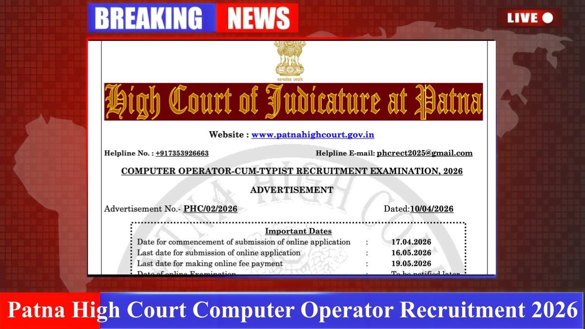 The High Court of Judicature at Patna (Bihar) has officially announced a new recruitment drive for the position of Computer Operator-cum-Typist. Candidates looking for a prestigious government job in the Bihar Judiciary can now apply for one of the 48 available vacancies. The online application window is open from April 17, 2026, until May 16, 2026. Ensure you meet the typing and educational requirements before submitting your form. (Advt. No: PHC/02/2026)