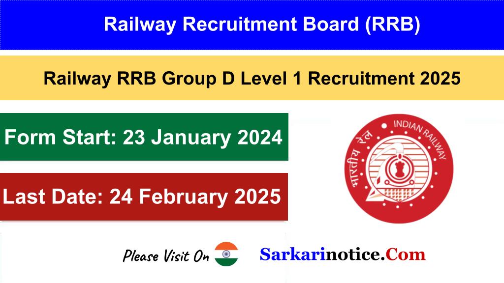 RRB Group D Recruitment 2025: Indian Railway Recruitment Board (RRB) ने हाल ही में Railyway RRB Group D Level 1 Recruitment 2025 के सम्बन्ध में अधिसूचना जारी की है। इस अधिसूचना के अनुसार RRB ने Railyway RRB Group D Recruitment 2025 Online Form प्राप्त करने शुरू कर दिए हैं। वह सभी उम्मीदवार जो RRB Group D Vacancy 2025 हेतु अप्लाई करने के लिए इच्छुक है, वह 23 जनवरी 2025 से 22 फरवरी 2025 तक इस रिक्ति के लिए ऑनलाइन आवेदन कर सकते हैं। Railway RRB Group D Recruitment 2025 Online Form से सम्बन्धित सभी महत्वपूर्ण जानकारी जैसे पात्रता, आयु सीमा, पद की जानकारी के अलावा ऑनलाइन फॉर्म लिंक और फॉर्म भरने की प्रक्रिया भी निम्नलिखित है।