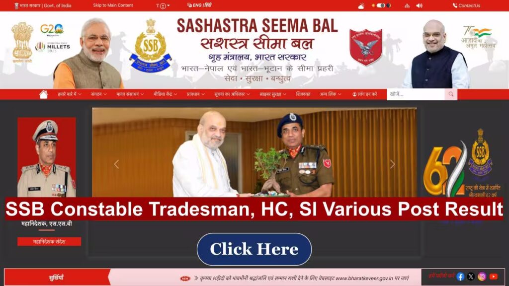 SSB Various Post 2023 Result : Sashastra Seema Bal (SSB) ने हाल ही में SSB Various Post Recruitment 2023 के सम्बन्ध में एक अधिसूचना जारी की है। इस अधिसूचना के अनुसार SSB ने SSB Constable Tradesman, Head Constable, Assistant Sub Inspector ASI Paramedical and Stenographer, Sub Inspector Notification 2023 Result जारी कर दिया है। वह उम्मीदवार जो SSB Constable Tradesman Recruitment 2023, SSB Head Constable Recruitment 2023, SSB Assistant Sub Inspector Recruitment 2023, SSB Paramedical Recruitment 2023, SSB Stenographer Recruitment 2023 और SSB Sub Inspector Recruitment 2023 में शामिल हुए थे, अपना रिजल्ट देख सकते हैं।